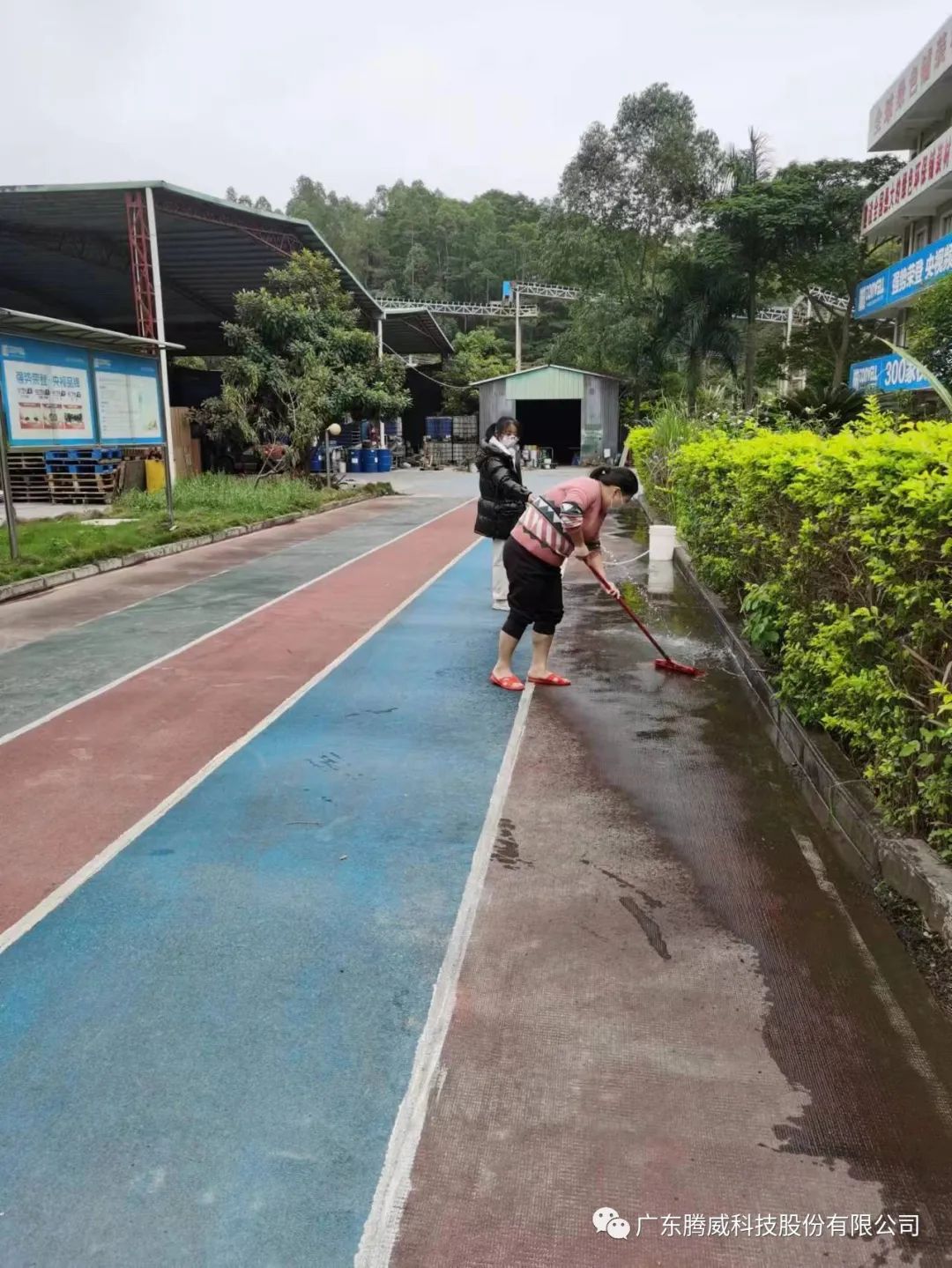 近日公司技術(shù)部同事對我司生產(chǎn)基地的彩虹跑道進行了翻新。采用材料為S-30聚脲耐磨面層材料。